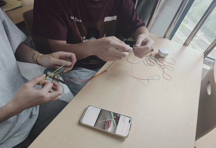 活动现场气氛热烈。在漆扇DIY环节中,同学们亲身体验了漆艺的魅力,通过挑选配色、滴漆入水、勾画纹路等步骤,创作出一幅幅精美的扇面图案。这些图案或似河流、或似星云、或似田野,充满艺术感和想象力。在五彩绳 DIY 环节中,同学们通过挑选彩绳、打结编花等步骤,制作出一个个寓意吉祥的五彩绳。这些五彩绳不仅美观大方,还承载着同学们对幸福家园的美好向往。