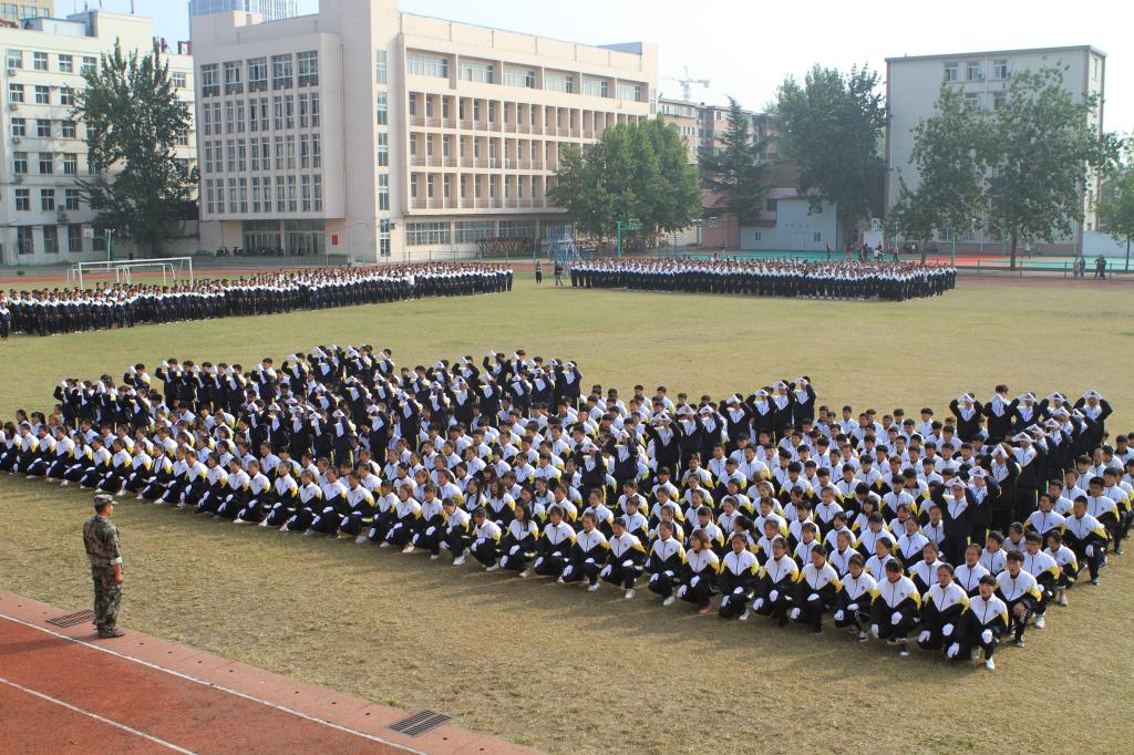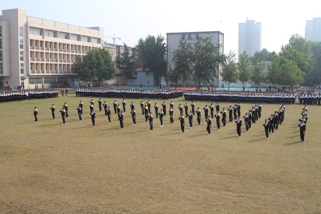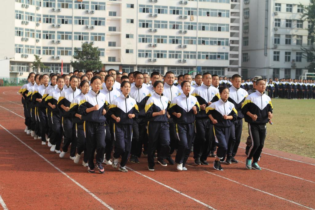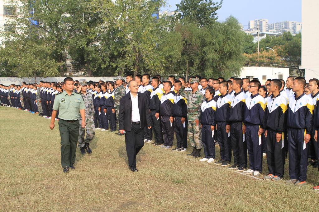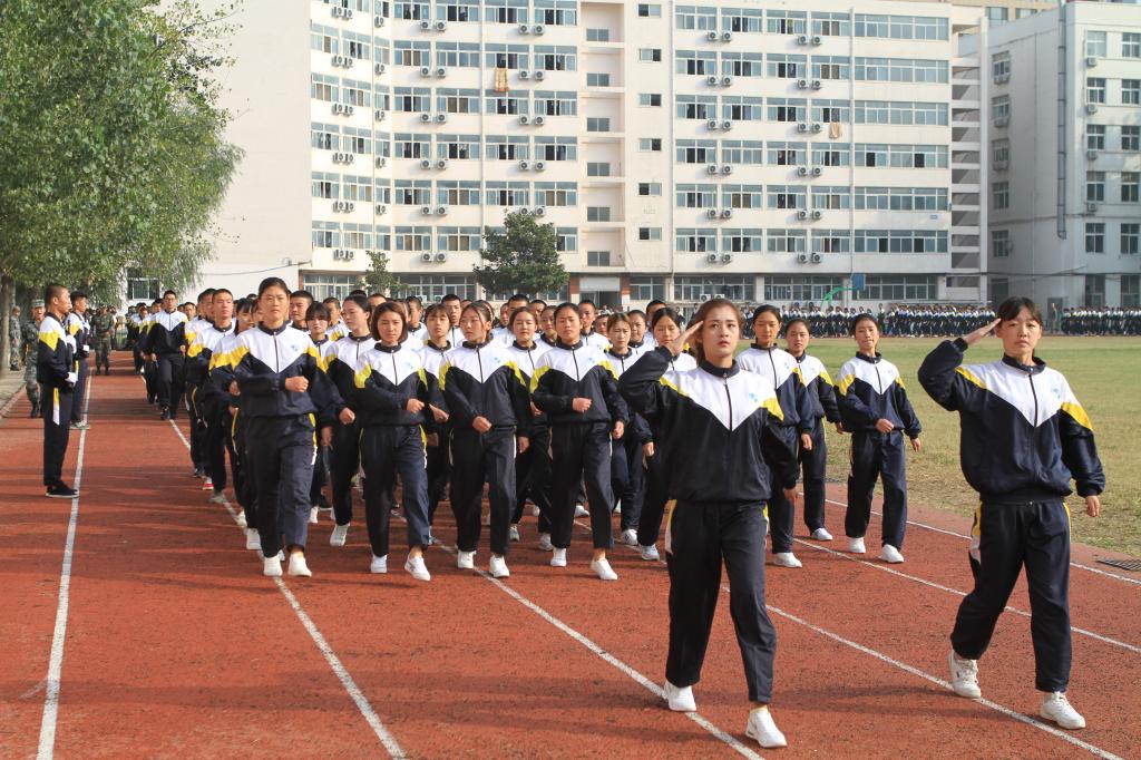 王立正在承训部队领导的陪同下检阅了参训员工及2017级新生军训方队。“同学们好!”“老师好!”“同学们辛苦了!”“为校争光!”检阅式上同学们嘹亮的口号响彻云霄。在雄壮激昂的分列式进行曲伴奏下,由参训新生组成的46个方队精神抖擞,迈着整齐有力的步伐,喊着嘹亮的口号,昂首阔步依次经过主席台,向学院领导、老师们汇报展示军训成果。分列式结束后,队列方队、数字变换方队、军体拳表演方队依次进行了汇报表演。汇报表演方队用嘹亮的口号,有力的步伐,整齐划一的动作,诠释参训新生良好的军人品质。