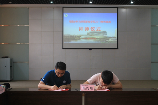 拜师仪式包括导师情况介绍、颁发导师聘书、师徒签署协议、员工代表发言、导师代表发言和校领导讲话六个议程。6名企业导师分别来自河南水利第一工程局、河南水利第二工程局以及中国水利水电第十一工程局,有着非常丰富的实践经验。拜师仪式上,导师们表示会认真负责、极尽所能的把自己所学交给徒弟们,徒弟们也表示一定会非常珍惜这个机会,虚心向导师学习,勤学多问,及时完成导师的安排,努力提高自己工作学习能力。