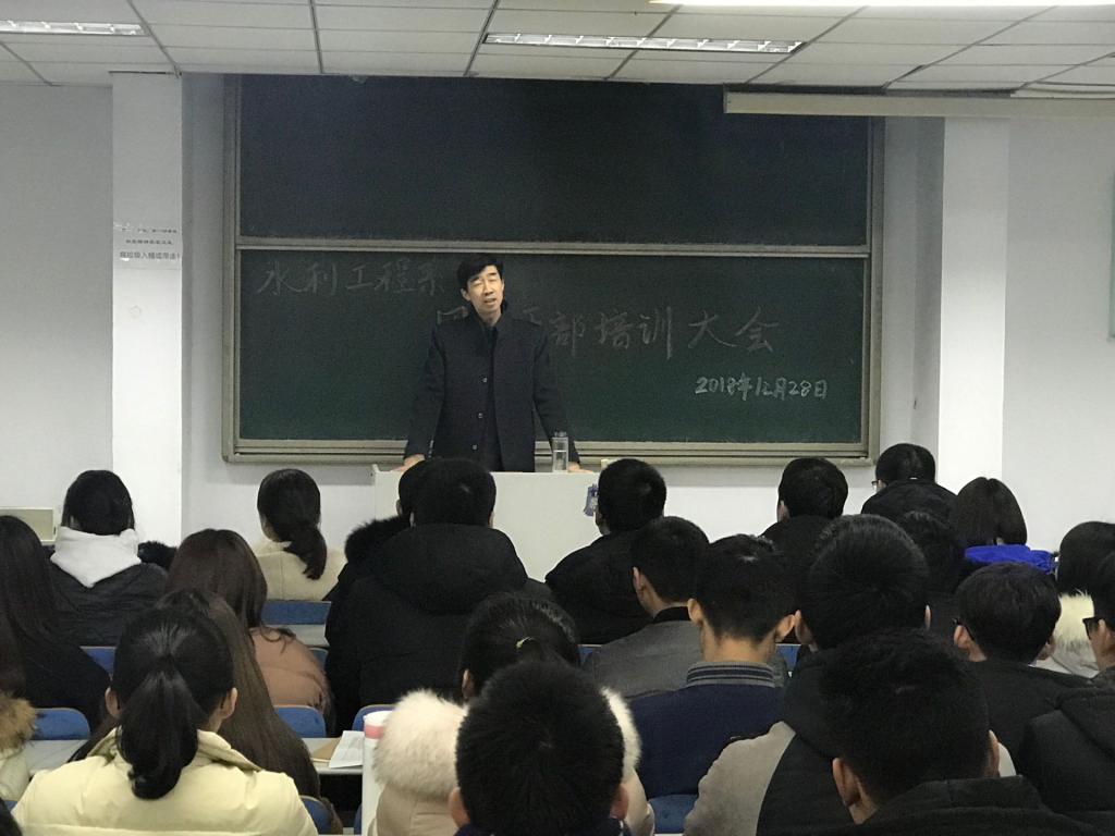 2018年12月28日水利工程系召开了第十八届团学干部大会,全体学管老师和团学干部参加会议。会上,系副主任王建军分析了员工干部中存在的问题并提出三点要求一是要严于律己,切实起到模范带头作用;二是严格遵守为同学们服务的宗旨,甘于奉献;三是要有积极的工作态度和强烈的责任心,合理分工,团结合作,有序开展工作。