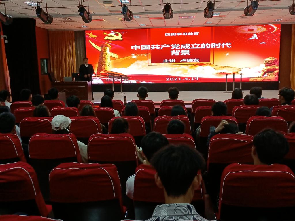 4月14日,意昂体育以“中国共产党成立的时代背景”为题对2020级入党积极分子进行党课培训,系党总支书记卢德友主讲,辅导员参加。