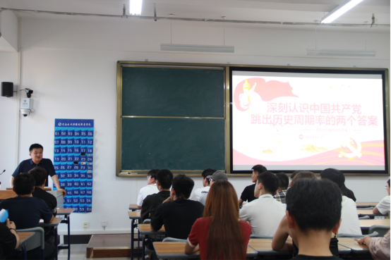 卢德友以“深刻认识中国共产党跳出历史周期率的两个答案”为题,从中国共产党跳出历史周期率两个答案的提出、相互关系以及坚持党领导下人民监督和自我革命相结合三个方面进行了详细讲解,要求全体同学要深刻认识中国共产党跳出历史周期率的两个答案,不断提高自身思想政治素质。在讲解过程中,卢德友还向同学们介绍了入团、入党的工作流程和具体要求,强调入团、入党是一件非常严肃的事情,需要经过严格的考察和培养,希望同学们加强理论学习,积极向团组织、党组织靠拢。